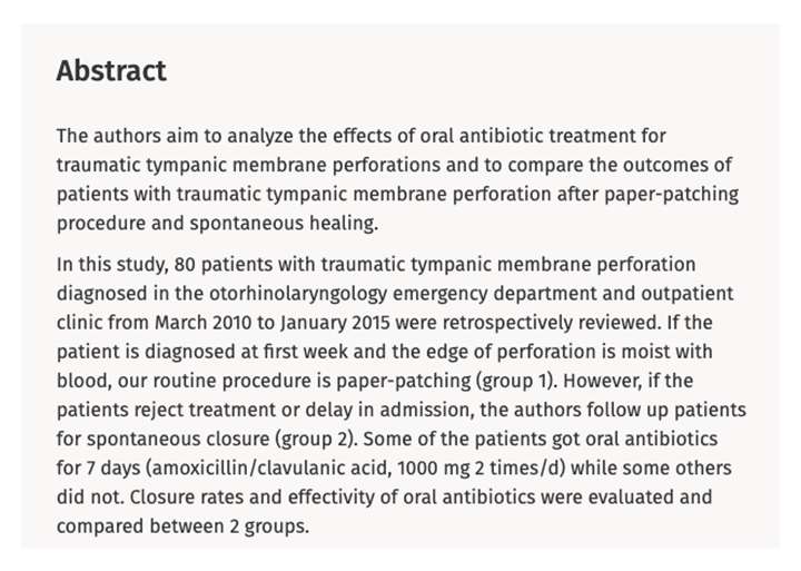 READ MOREComparing Spontaneous Closure and Paper Patching in Traumatic Tympanic Membrane...
