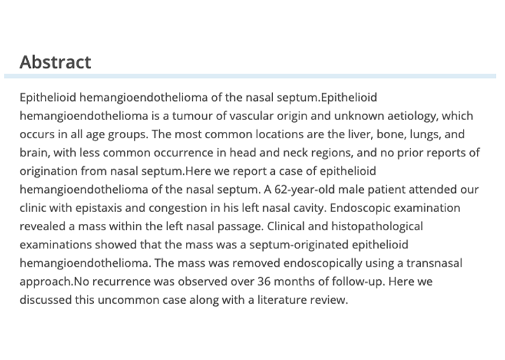 READ MOREEpithelioid hemangioendothelioma of the nasal septum. Background: Epithelioid...
