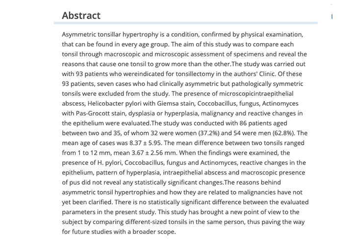 READ MOREObjectives: Asymmetric tonsillar hypertrophy is a condition, confirmed by physical examination, that can be found in every age group.