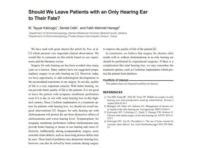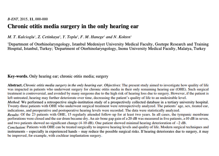 READ MOREChronic otitis media surgery in the only hearing ear. Objectives: The present study aimed to investigate how quality...