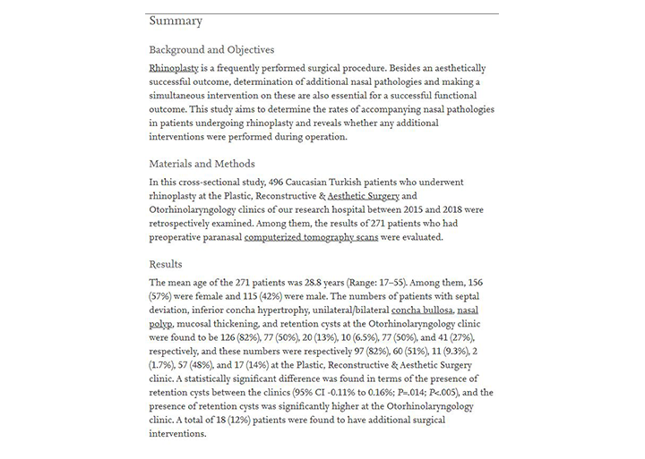 READ MORERhinoplasty is a frequently performed surgical procedure. Besides an aesthetically successful outcome, determination of additional...