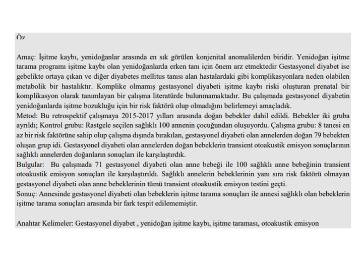 Devamını OkuAmaç: İşitme kaybı, yenidoğanlar arasında en sık görülen konjenital anomalilerden biridir.