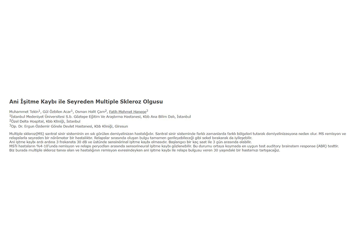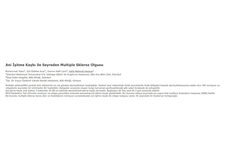 Multiple skleroz(MS) santral sinir sisteminin en sık görülen demiyelinizan hastalığıdır. Santral sinir sisteminde farklı zamanlarda farklı...
